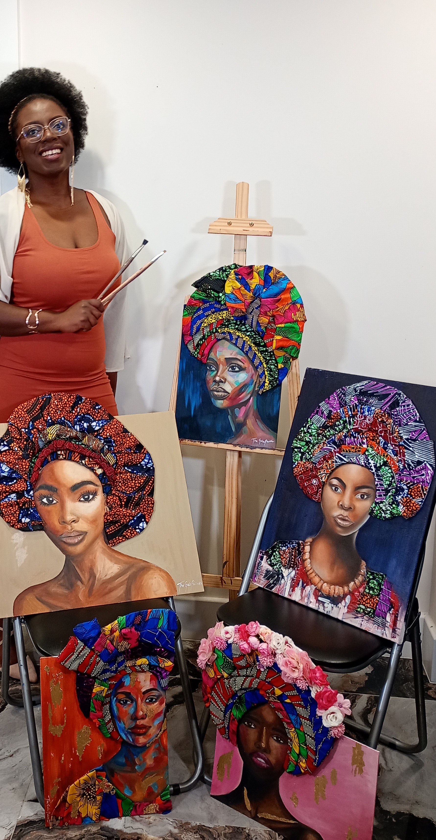 Kat is The Gele Painter, creating stunning and timeless portraits of women adorned in their African gele for any interior space.