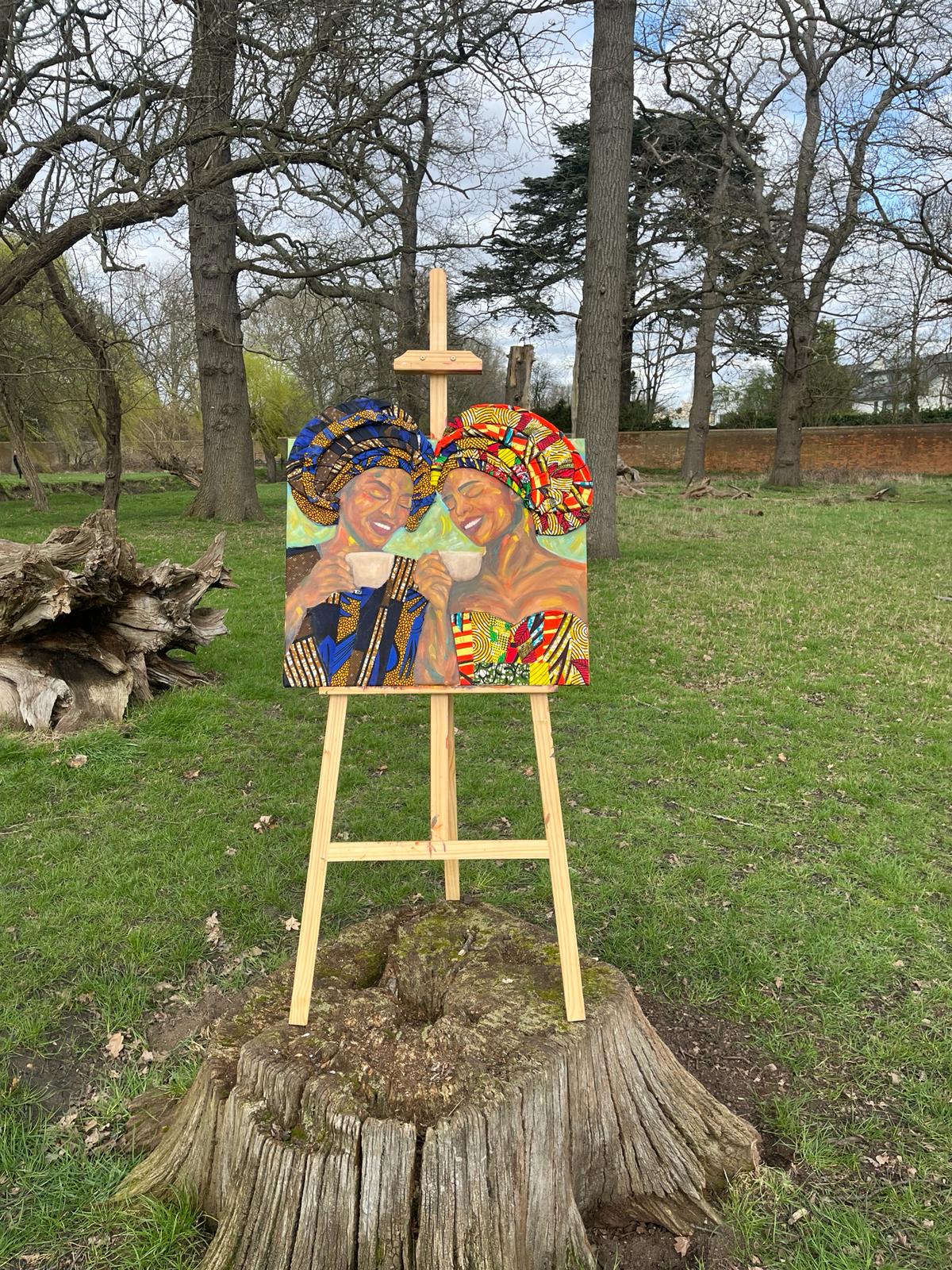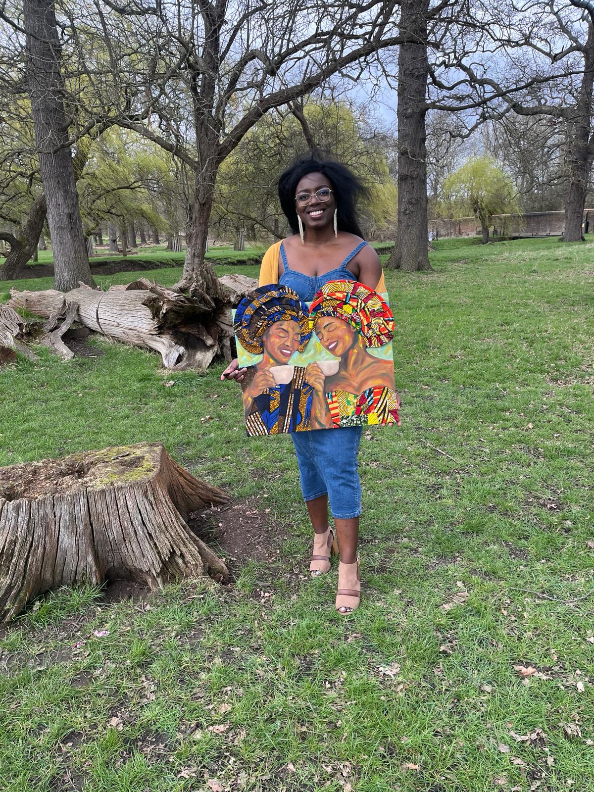 “Owambé” is a painting of two women, that highlights togetherness, cherished company and sisterhood.